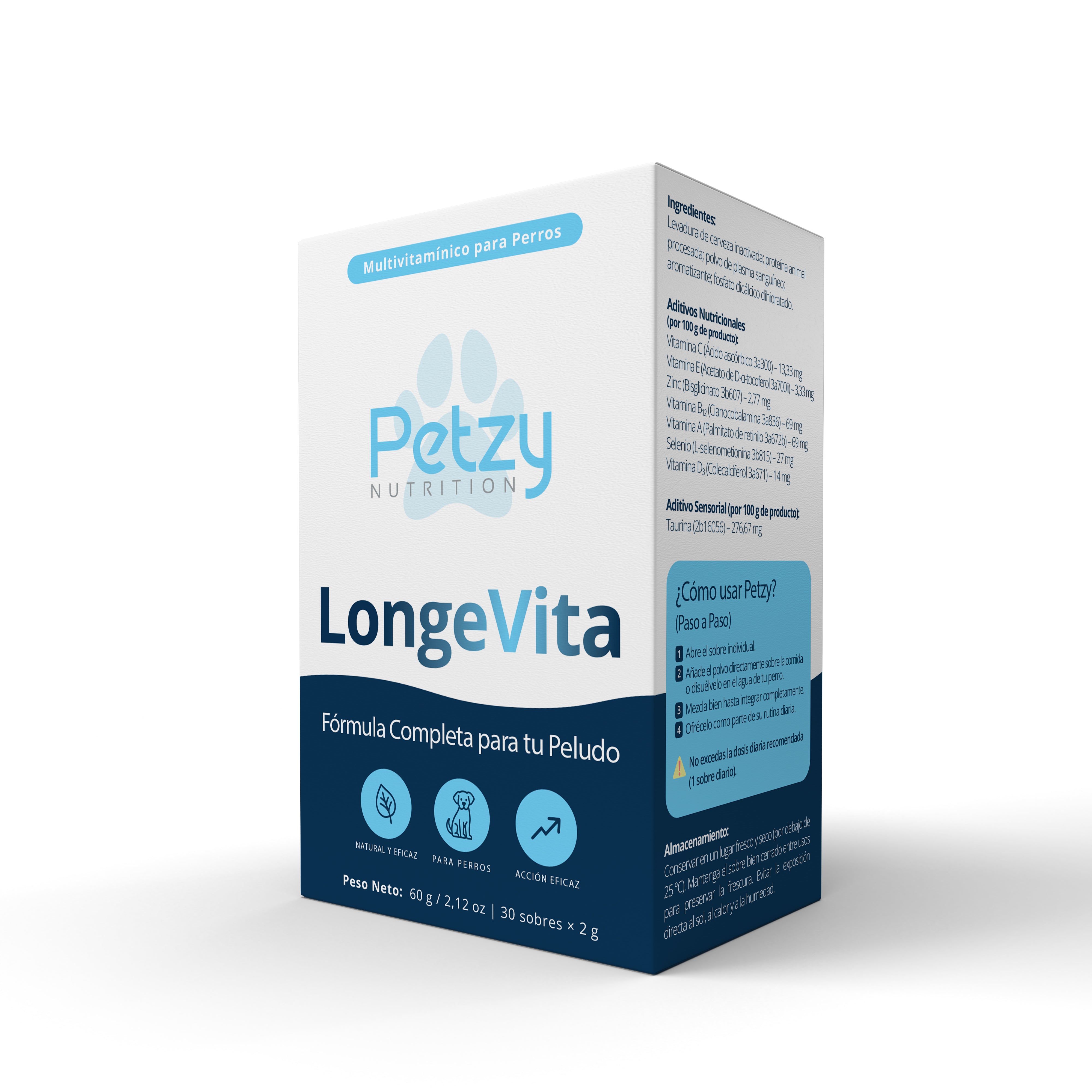 1. Usa un sobre diario: Cada día, abre un sobre de vitaminas Petzy.